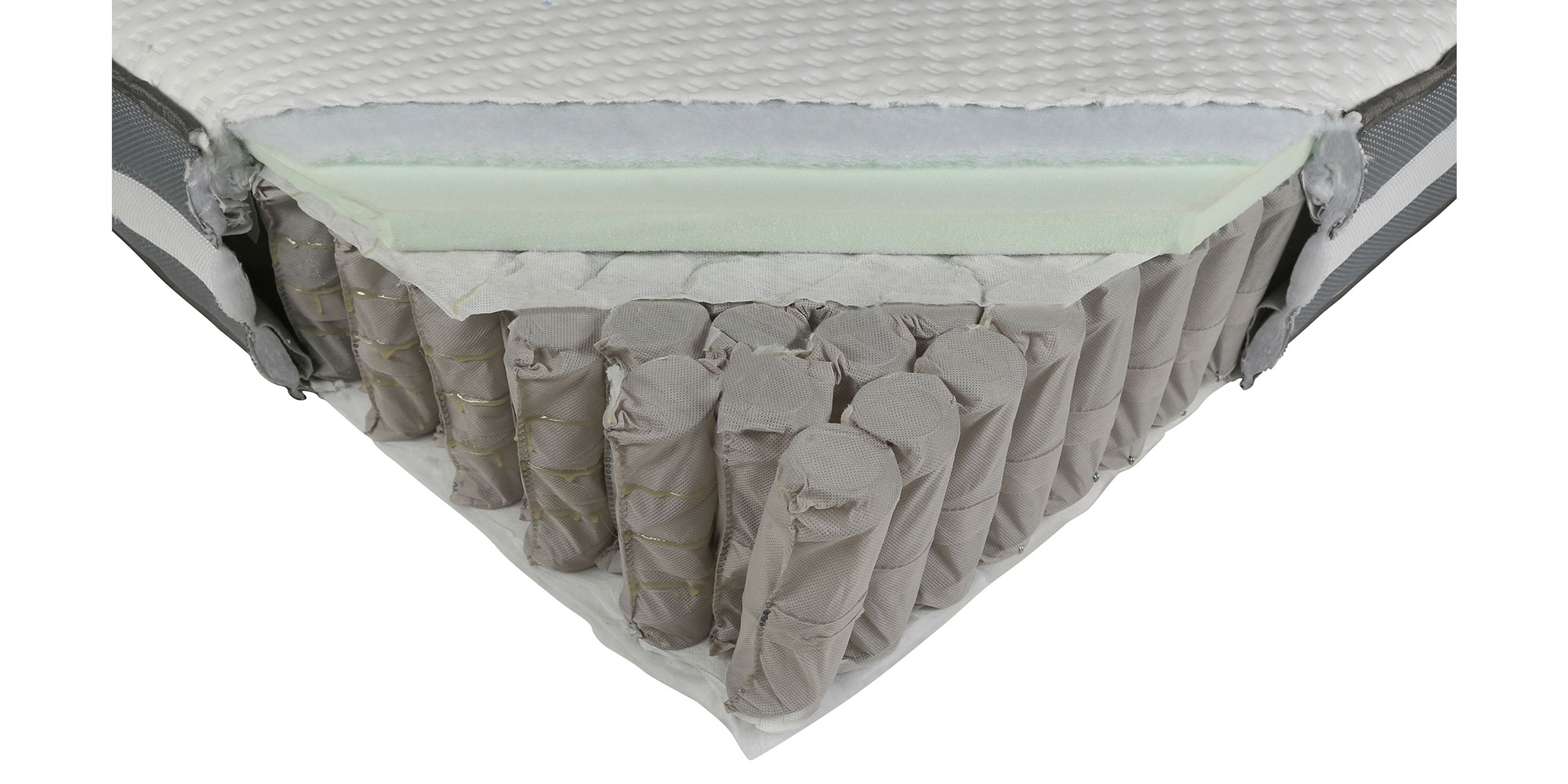 This pocket sprung mattress has a 19cm pocket spring core with a 3cm layer of polyurethane foam with thin layers of polyester on top and it feels cold to lie on.